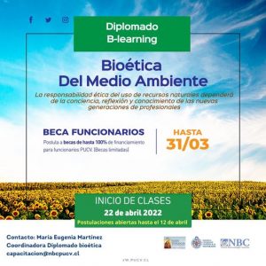 El Diplomado en Bioética del Medio Ambiente es un programa creado y desarrollado por la Facultad Eclesiástica de Teología PUCV y el Núcleo Biotecnología Curauma de la Pontificia Universidad Católica de Valparaíso y cuyo propósito fundamental es evaluar la magnitud de los diversos problemas ambientales y sus consecuencias en los ecosistemas.